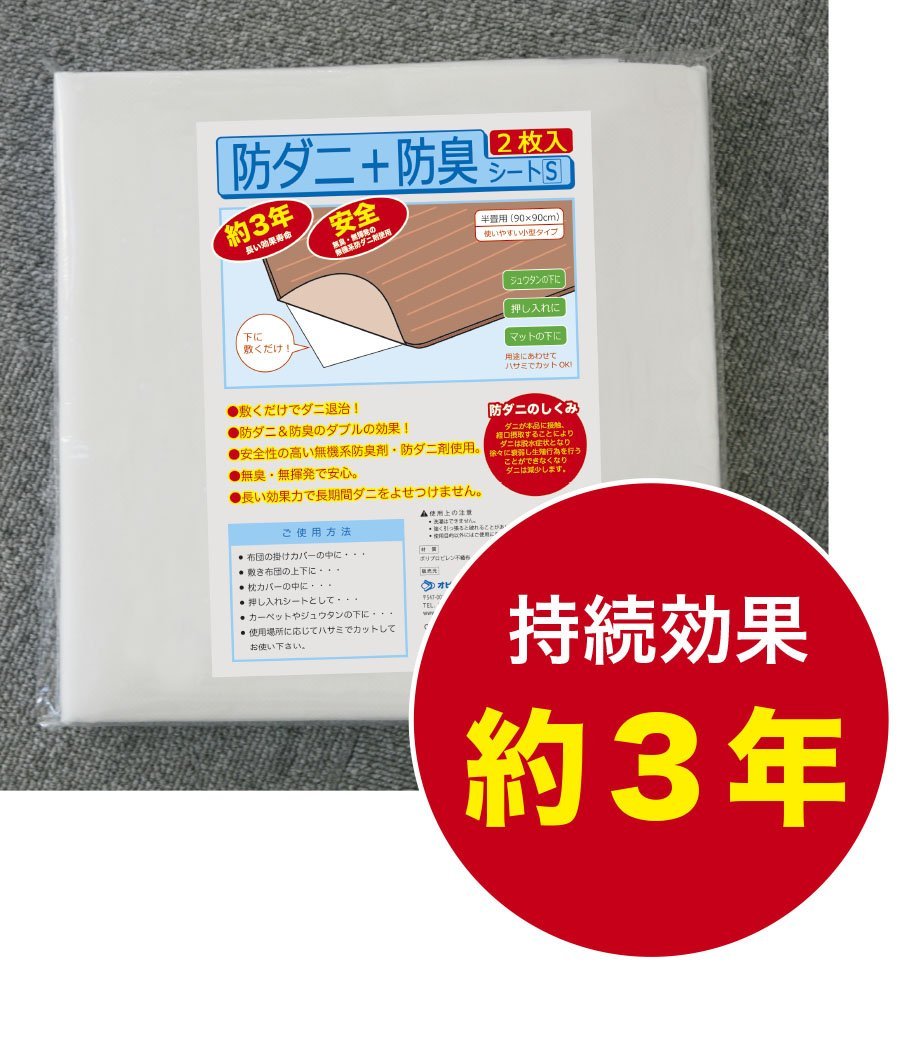 Made in Japan mite + deodorant sheet S [2 pieces] 90 × 90cm / (sustained effect: about 3 years) Normal