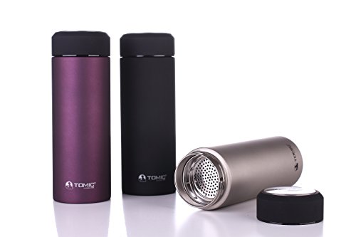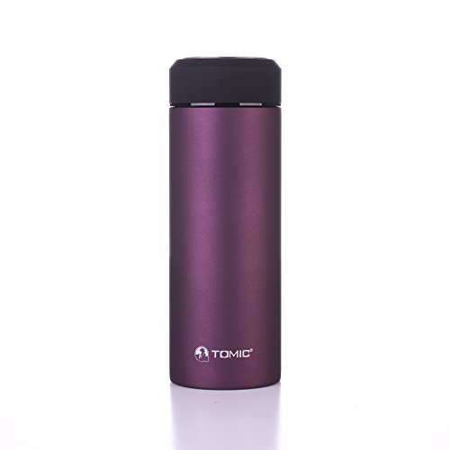 TOMIC Stainless Steel Thermos 16 Oz. Double Wall Vacuum Insulated with 18/8 Steel - Keeps Drinks Hot or Cold for 12 Hours. Travel Mug, Tumbler or Water Bottle with a removable Tea Strainer (Purple)