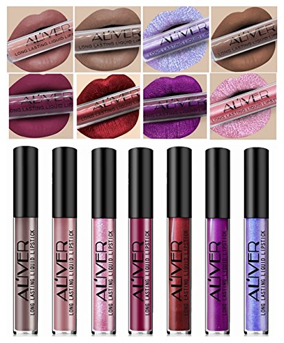 AL'IVER Matte Liquid Lipstick 7 PCs Waterproof Glitter Lipstick Lip Gloss Long Lasting Stains Tints Set