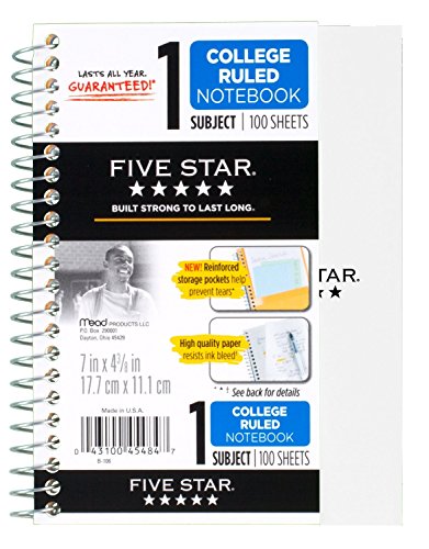 6 Pack Of Mead Five Star Personal Spiral Notebook, 7" x 4 3/8", 100 Sheets, College Rule, Assorted colors (MEA45484)