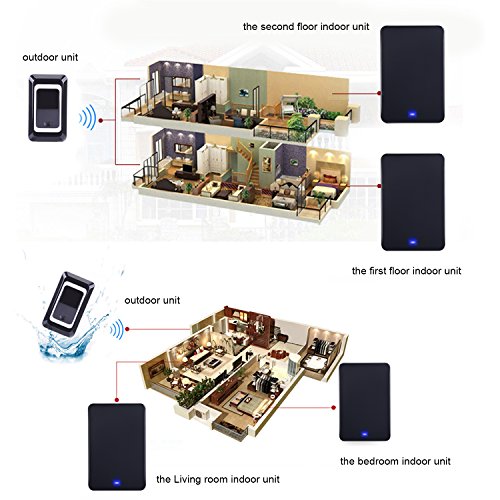 300 METERS RADIO DISTANCE - Use advanced electronic technology, this wireless doorbell can reach 300 meters in the open area without any interference when tested. If through the security doors or walls, it can reach 20-30 meters or 30-50 meters (depending on environment).