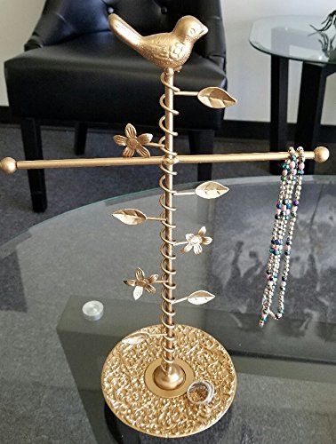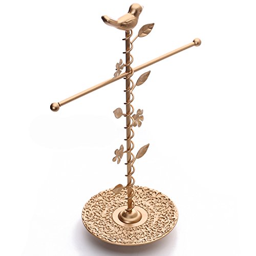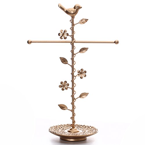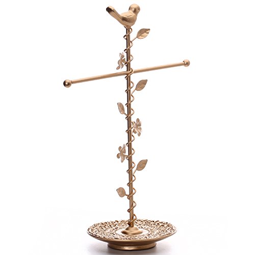 Ikee Design Matte Gold Color T-bar Jewelry Stand Organizer Storage with A Bird