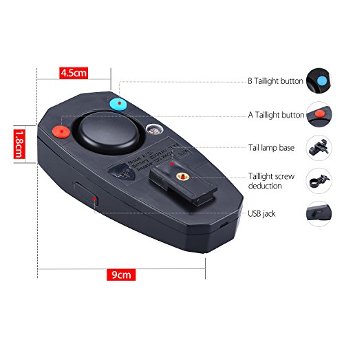 BOBLOV A4 Taillight is a personal safety protection professional intelligent taillight, with intelligent wireless brake lights, intelligent light adjustment, intelligent start and stop,intelligent SOS distress lights, burglar alarm, three-color multi-mode taillights, USB lithium 2A fast charge and other functions, using the latest high-level ambient light detection and adjustment technology, programming, to solve people and vehicles in the process of riding the security risks, and do sophisticated design, user-friendly engineering design.? Burglar Alarm:? In the alert mode, vibration or percussion the car, the Taillight began to ring the alarm 2 seconds immediately, if vibration is still detected within 2~12 seconds, then the vibration is continue ringing 30 seconds alarm sound immediately.? Material: PC ABS PP? Battery: 3.7V 800mAh Lithium Battery? DB: 105-120db? Charging Method: USB? Standby Time: Two Months(10 times a day switch calculation)? Working Environment Temperature:-10~60°C? Working Environment Humidity: <80%? Storage Temperature: -20°C - 70°C? Waterproof: IP65? Size: 9.0*4.5*1.8(CM)?