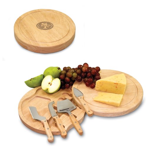 ReleaseDate : 2011-08-26 Studio : Picnic Time Publisher : Picnic Time Binding : Sports Product Description Show your team spirit with this NFL Circo cheese set featuring your favorite team's laser engraved logo on the top. Great for entertaining, this Circo cheese set features a swivel-style circular chopping board made of naturally durable hardwood. The top of this uniquely designed cheese set slides away on a hinge, revealing the cheese tools nested inside. The four assorted tools feature stainless steel, full-tang construction, and include one each; cheese plane, knife/spreader, curved knife with a dual pronged tip for lifting, and a sharp cheese knife/cutter for extra hard cheeses. Additional features of the Circo include a recessed moat along the board's edge to catch cheese brine or other liquids, and a generous surface area for serving. This is a great gift idea! 0