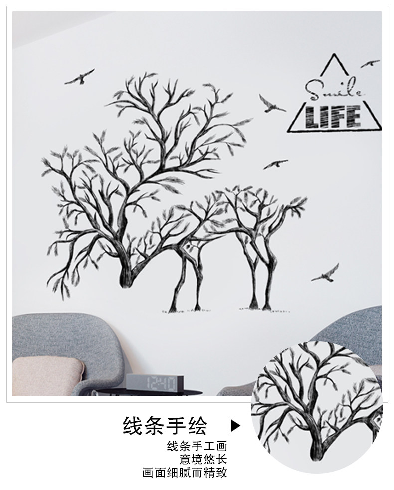 墙贴纸创意卧室温馨大学生宿舍墙纸壁纸自粘背景墙树枝麋鹿与飞鸟