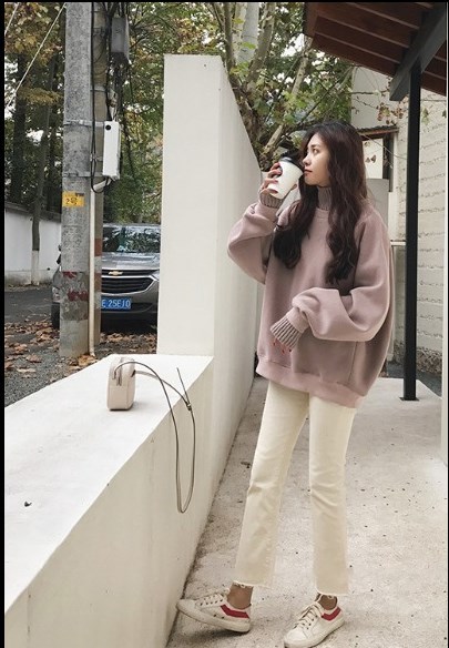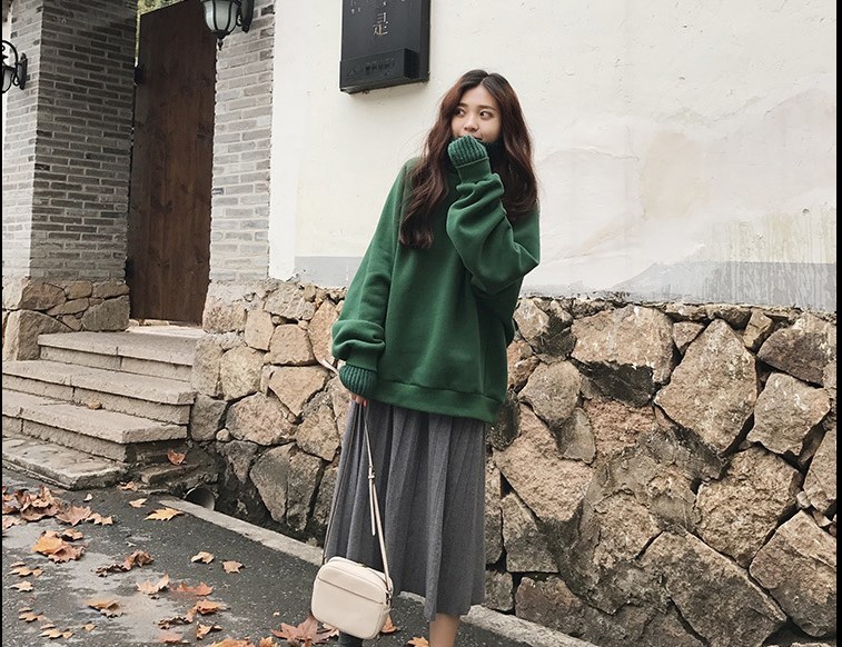 首元を隠してくれるハイネックは 上品で落ち着いた印象を コーディネートにプラスしてくれます。