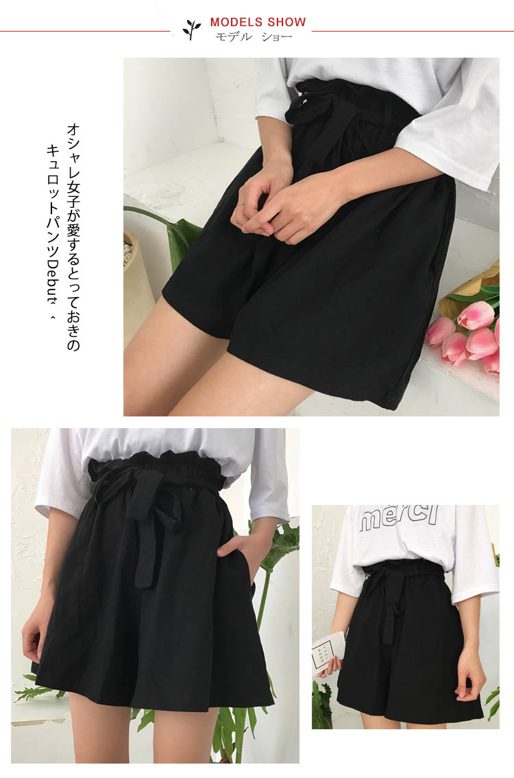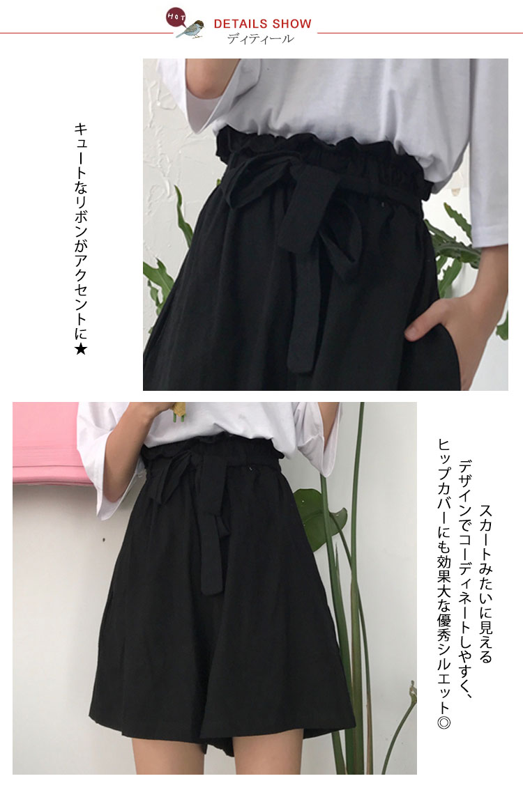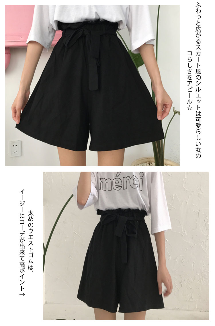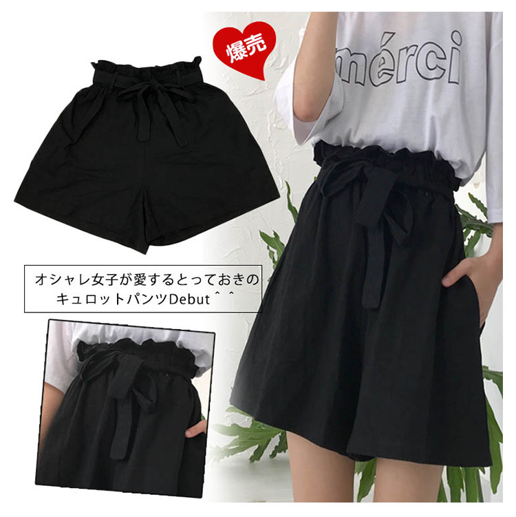 | オシャレ女子が愛するとっておきのキュロットパンツDebut^^ふわっと広がるスカート風のシルエットは可愛らしい女のコらしさをアピール☆太めのウエストゴムは、イージーにコーデが出来て高ポイント↑シンプルで使いやすいデザインなので、着回し力も抜群です! | |