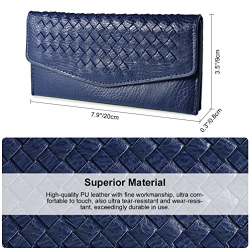 Product Description Information PU leather and braided appearance make this long wallet more attractive and good-looking. Featured by its flip-open cover, this clutch bag is quite elegant and chic. And this wallet well matches with your dress or other clothes, which is perfectly suitable for most occasions. Features Material: PU leather Gender: female Size(about):?length 7.9'/20cm; width 3.5'/9cm; height 0.3'/0.8cm Color: royal blue,black Package list: 1* wallet for women Notice * The actual color may vary slightly from the online image due to monitor color settings. * Please allow slight measurement deviation for the data. -------------------------------------------------------- Package Including -1* wallet for women 0 |