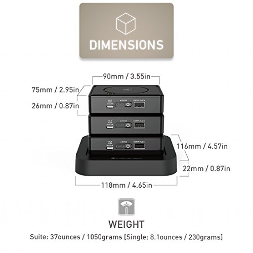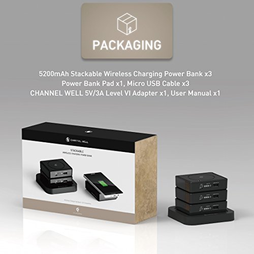 Channel Well Stackable Wireless Charger Power Bank ( 5200mAh External Battery Power Bank) -3 Packs Plus Charging Stand for All Qi-enabled Smartphone, Tablet and Wearable