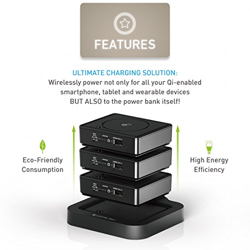 Ultimate Charging Solution: Wirelessly power not only for all your Qi-enabled smartphone, tablet and wearable BUT ALSO to the power bank itself. Just by stacking your device on the power bank / charging pad, you may ditch all the charging cables and cords!