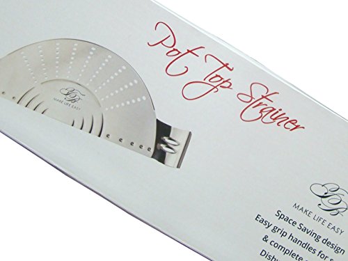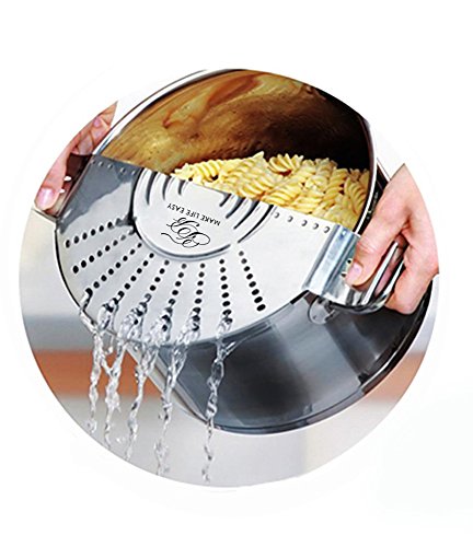 TB Make Life Easy Pot Top Strainer - Stainless Steel Sieve, Smart Design Colander Lid Prevents Hot Water Spills On User