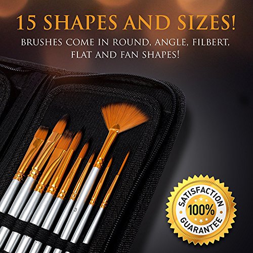 - ✓ INSPIRED BY EXPRESSIVE FREEDOM. When you order your paint brush set, you’ll receive 15 nylon brushes of varied shapes and sizes. These Art Brushes are perfect for acrylics, watercolors, oils, and face & body painting.