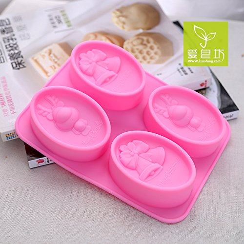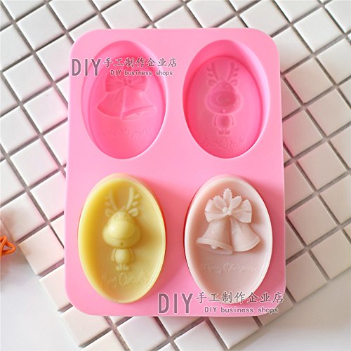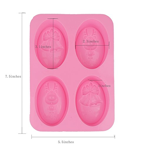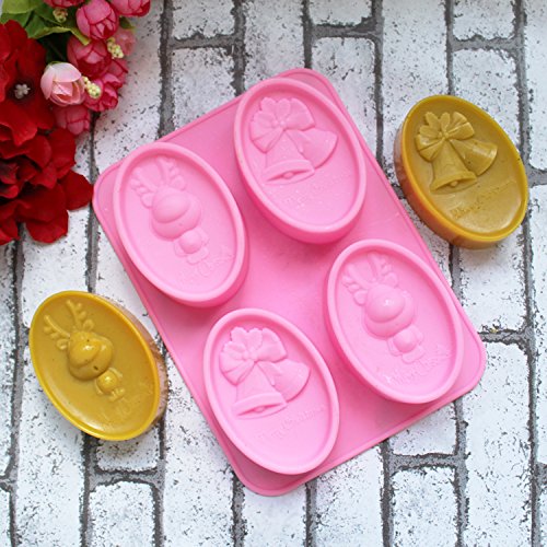 Lanyani Merry Christmas Silicone Soap Mold Oval Lotion Bar Making Mold Reindeer Bells Homemade Soap Candy Chocolate Brownies Mold