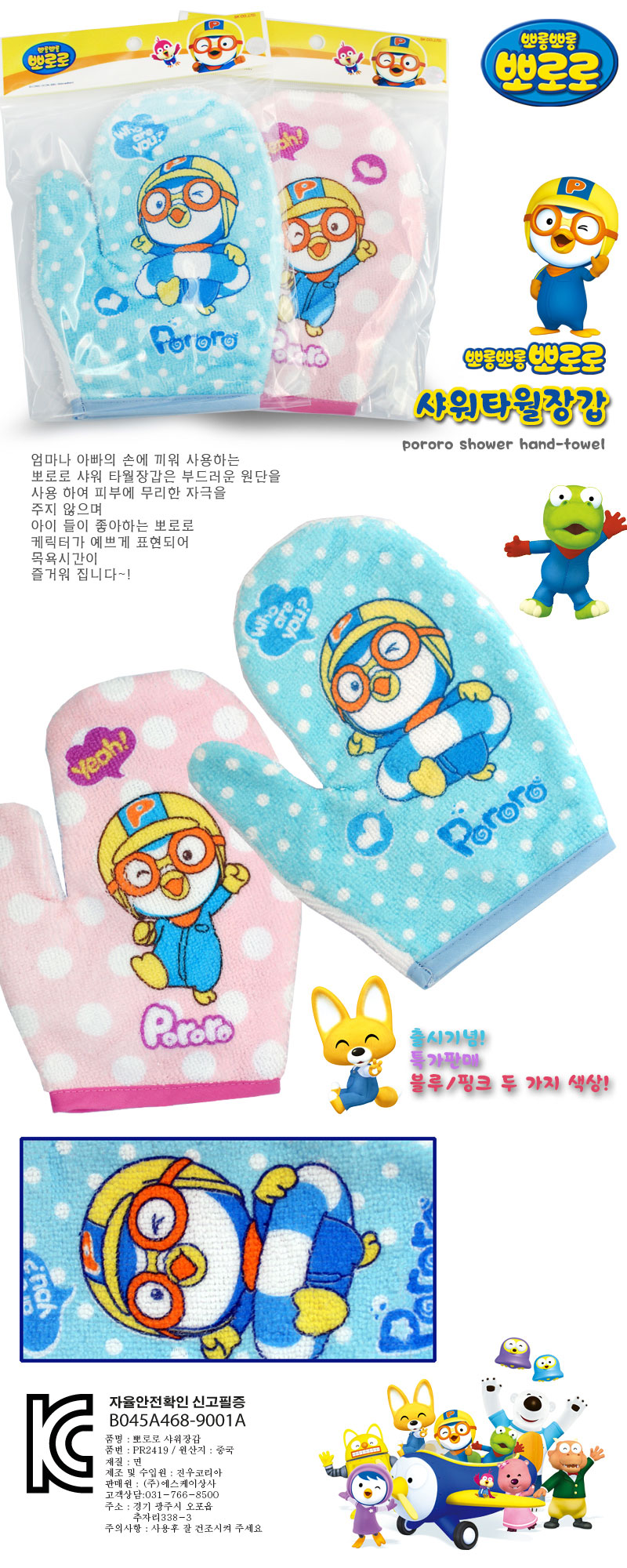 Shower Gloves - Pink Pororo Pororo