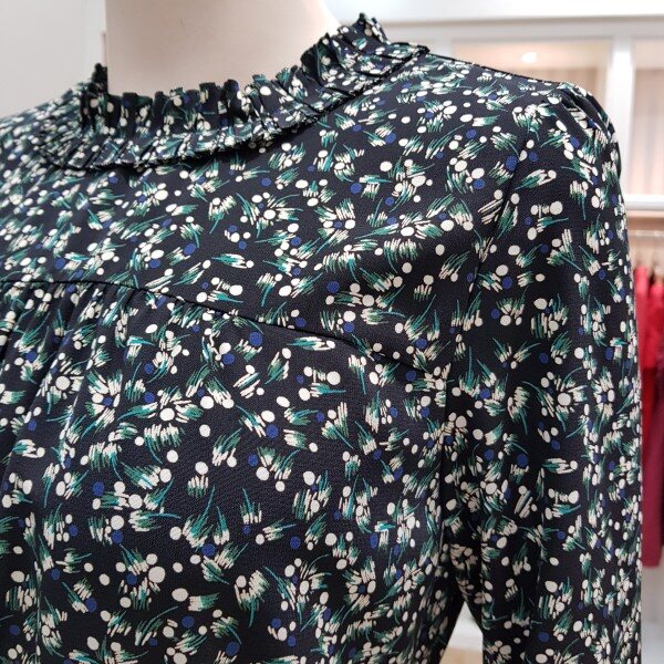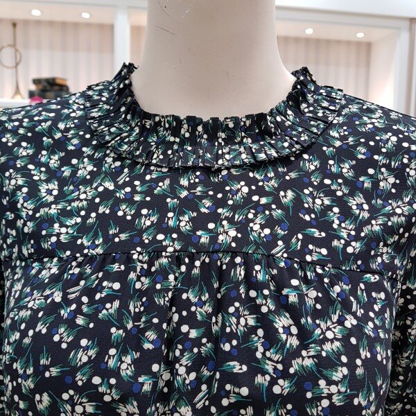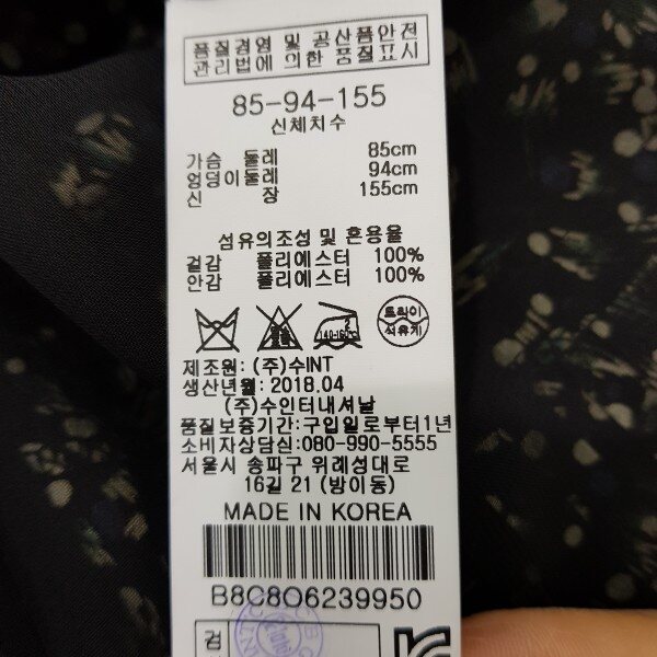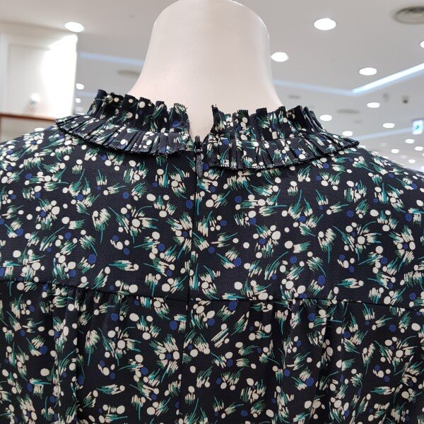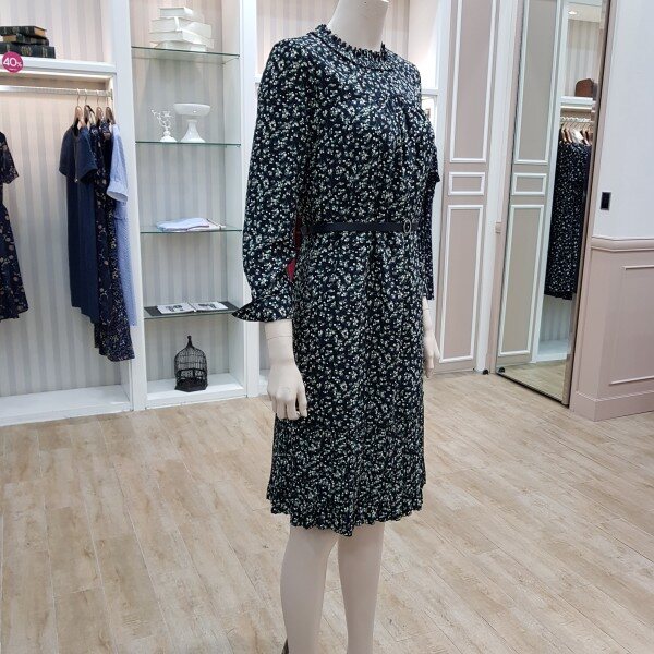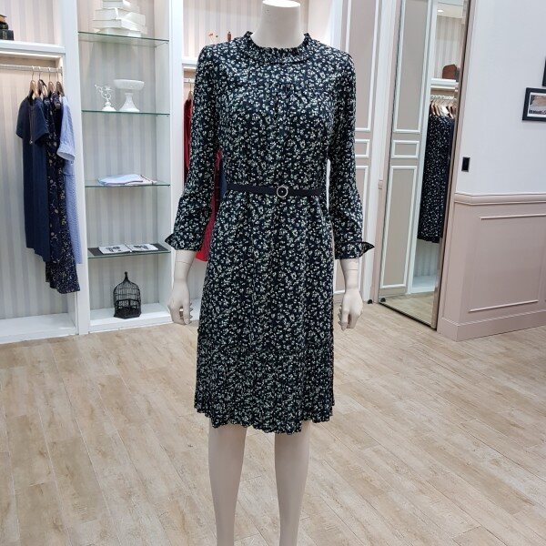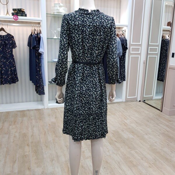 넥라인 레이스와 밑단주름 디테일이 돋보이는 원피스느벨트로 르즈하게 연출 해도 좋아요~55기준 총장94cm