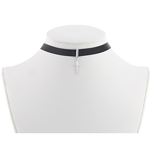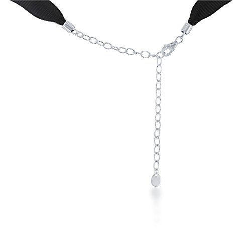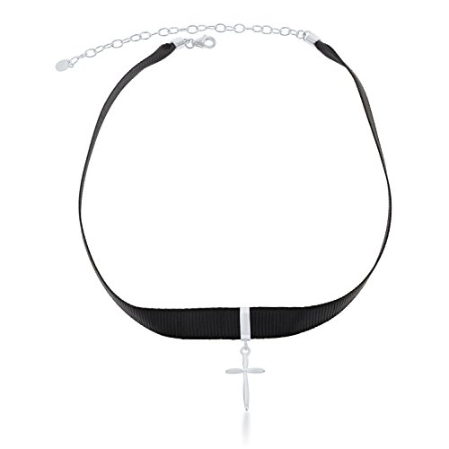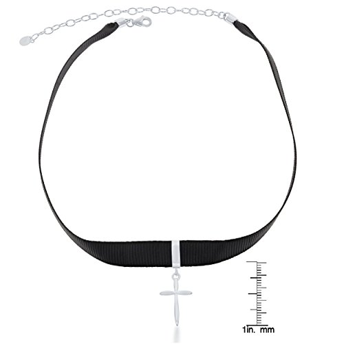 Sterling Silver 12" + 3" Black Nylon with Cross Charm Choker Communion-Confirmation Necklace