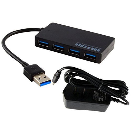 USB 3.0 Hub, 4 Port USB Hub with Power Adapter Ultra Slim Super Speed Data Transfer Hub for mac laptop Ultrabook and Tablet PC leedemore