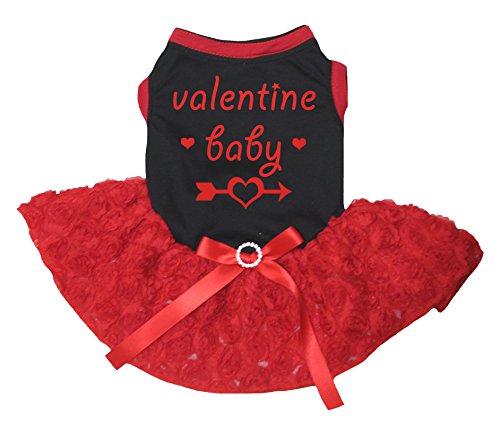 -. Title : Petitebella Puppy Cloth Dog Dress Valentine Baby Black Shirt Red Floral Tutu