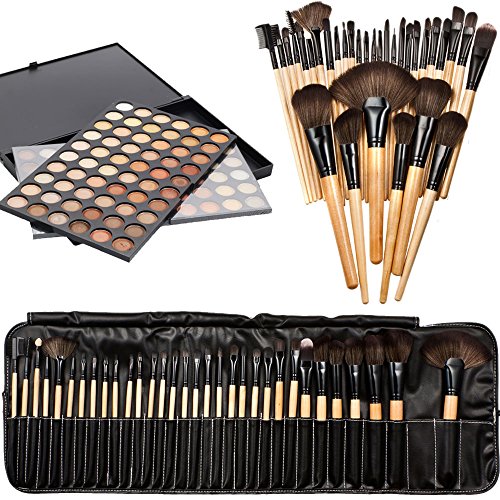 Feature : 32 Pcs Professional Makeup Eyebrow Shadow Cosmetic Brush Set Kit Case with a Beautiful Pouch / This include 32 pcs brushes for face,eyes and so on,which includes all the basics you need for daily applications. / Eye shadow makeup palette offers a complete assortment of eye shadows / With 2 layer easy-to-carry design, it is more convenient to use / Package Includes: 1 x 32 Pcs Makeup Brush; 1 x 120 Colors Eyeshadow Palette