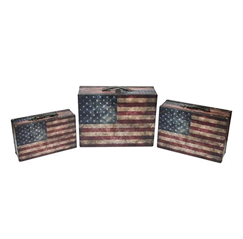 Northlight Set of 3 Rustic American Flag Decorative Wooden Storage Boxes, 16", Multicolored