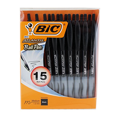BIC Atlantis Retractable Ballpoint Pen, 1.0mm, Medium Point, Black Ink, Pack of 15