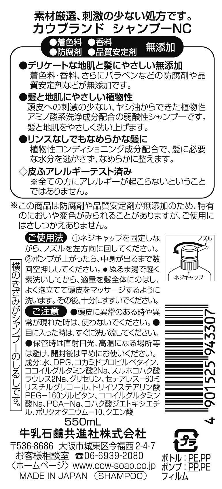Cow Soap | Shampoo | Additive Free Shampoo 550ml (Japan Import)