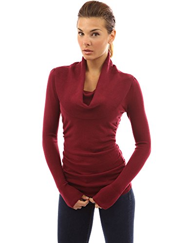 PattyBoutik Cowl Neck Long Sleeve Ruched Sides Stretch Pullover Blouse Tunic Sweater. Model in pictures is 5 feet 8 inches (173cm) tall.