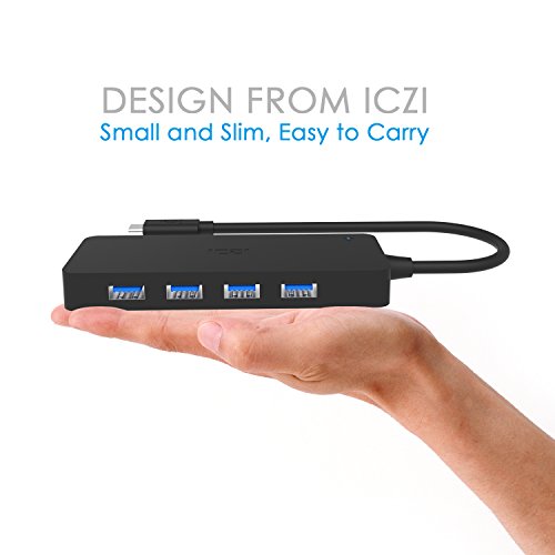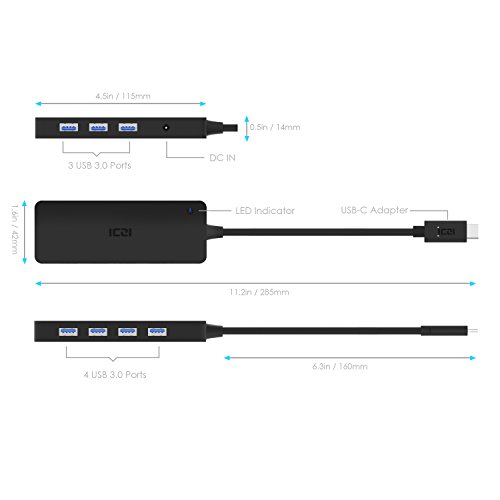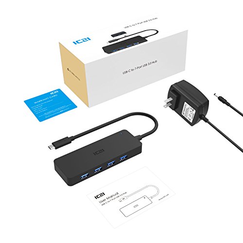 USB C to 7 Port USB 3.0 Hub, ICZI Type C to USB 3.0 Hubs Compatible for Thunderbolt 3 Port Hub with Power Adapter for MacBook ChromeBook Pixel Acer Aspire ASUS & More Type C Supported Devices - Black