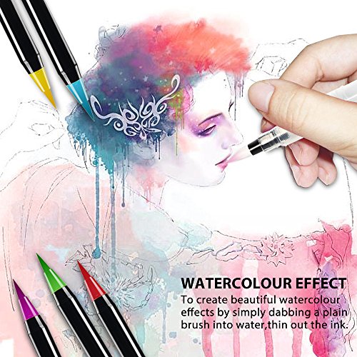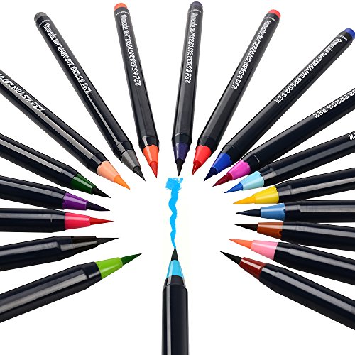 -. Feature : 20 BRIGHT COLORS: This coloring pen set comes with 20 different color brush pens and 1 water brush free. / HIGH QUALITY: Made of high quality nylon fur, good elastic, odorless and non-toxic, easy to wash off skin & clothes. Long lasting professional standard brush pens designed for perfection, brushes stay intact. / GOOD TO KNOW: High purity, full of bright, can be mixed with water, after can daub on the palette as a watercolor. / SUITABLE FOR: Coloring books, doodling, manga & comic illustration, calligraphy. / 100% SATISFACTION GUARANTE! If any are inoperable, damaged, leaked, please contact us, we will offer free replacement or full refund.