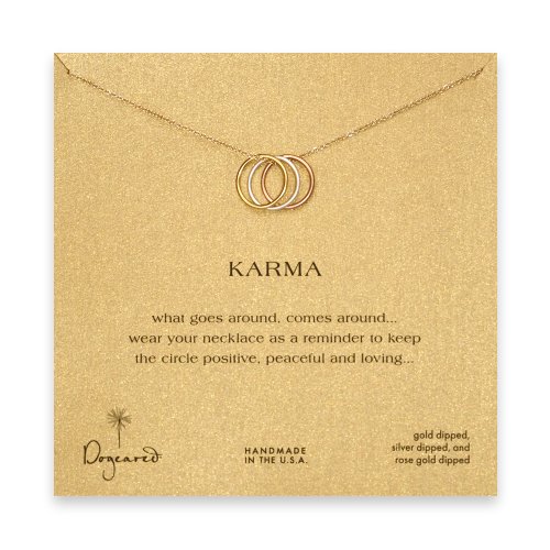 Everyone knows that three is a magic number. But did you know there are three kinds of karma? In a nutshell, there's past, present, and future karma. This necklace features a circle for each type, so it's a great looking way to maximize your karmic potential! card message what goes around, comes around...wear your necklace as a reminder to keep the circle positive, peaceful and loving.Feature