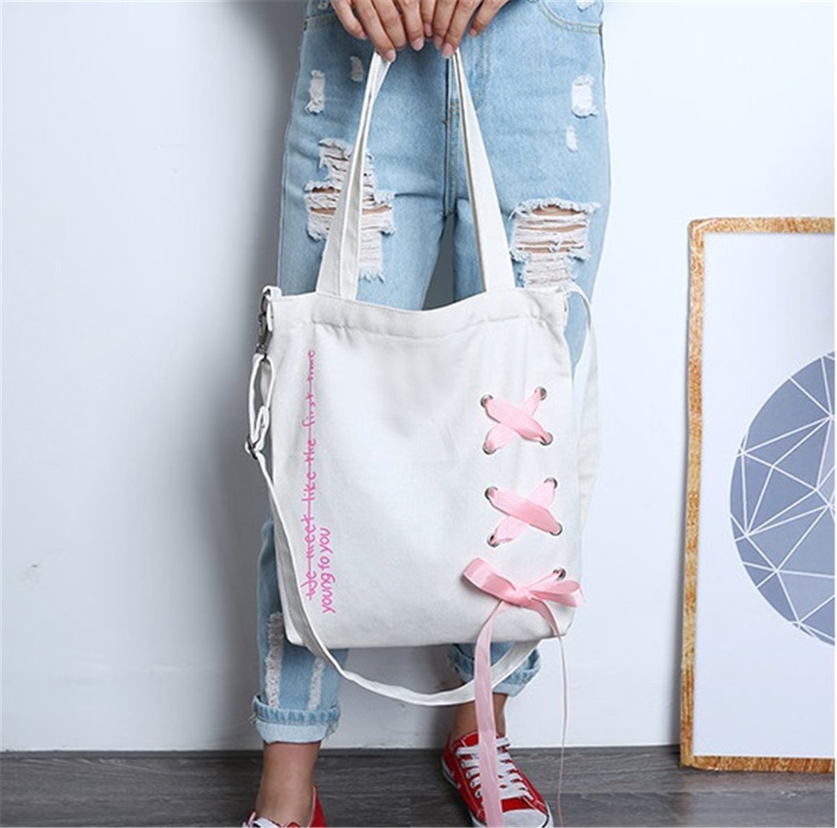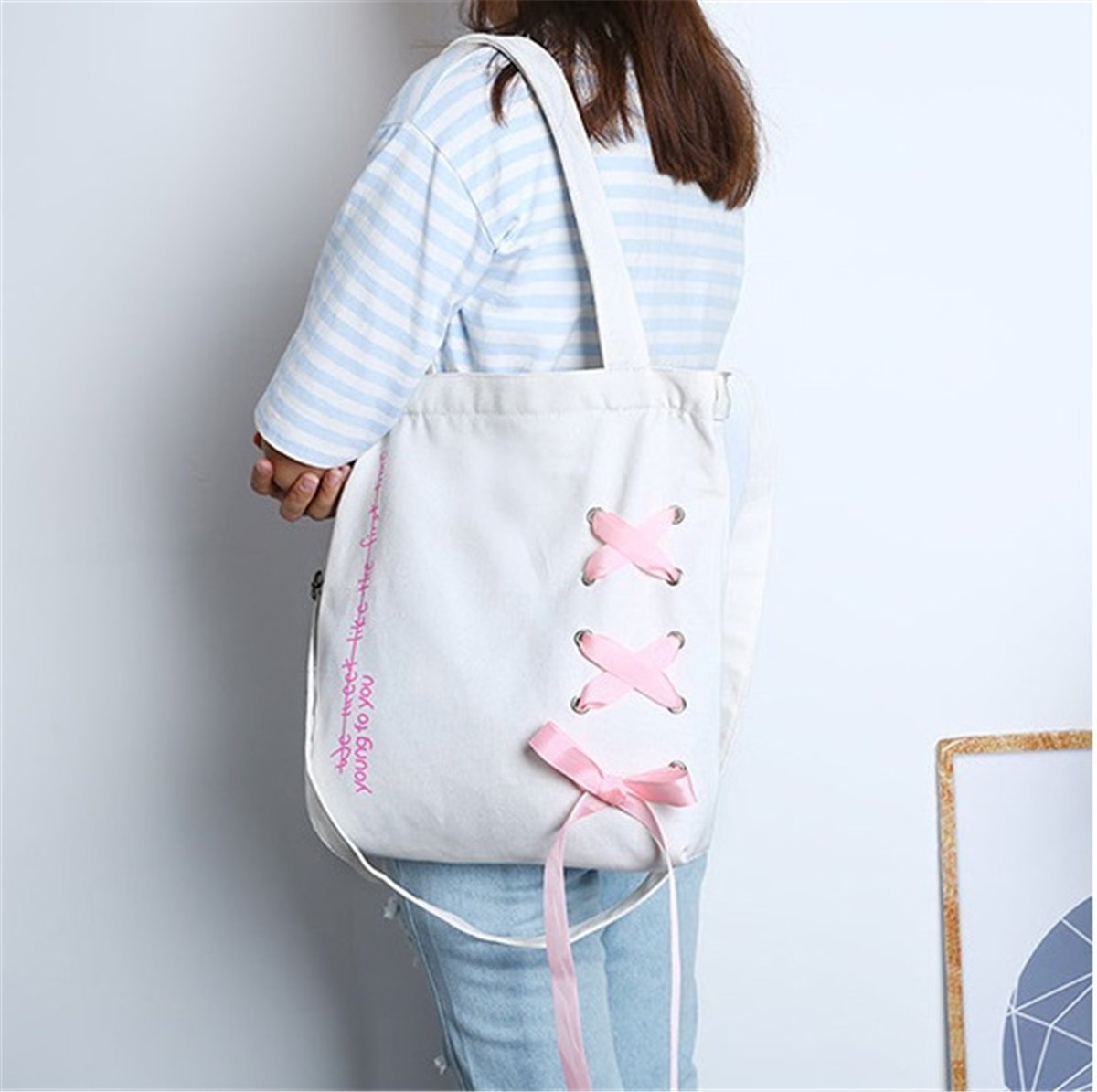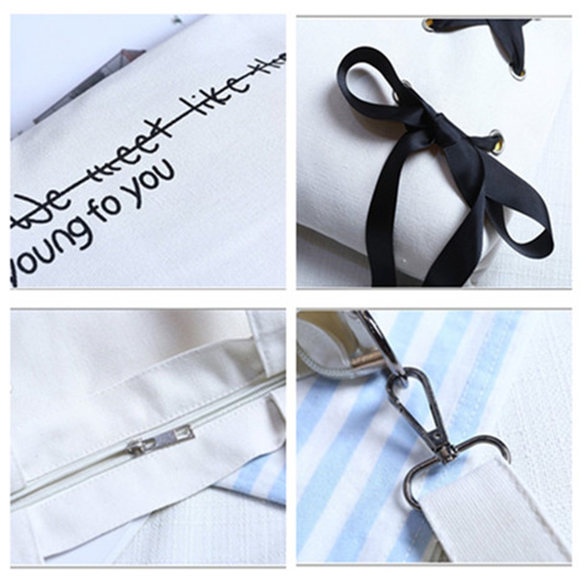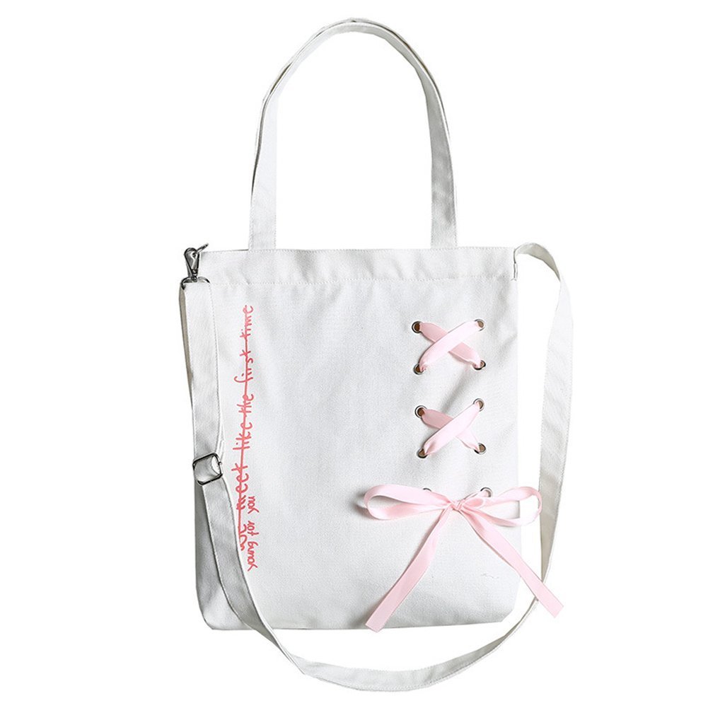 Canvas Tote Bag 2 WAY - KQueenStar Women's Canvas Shoulder Handbag Bag with Alphabet Ribbon A4