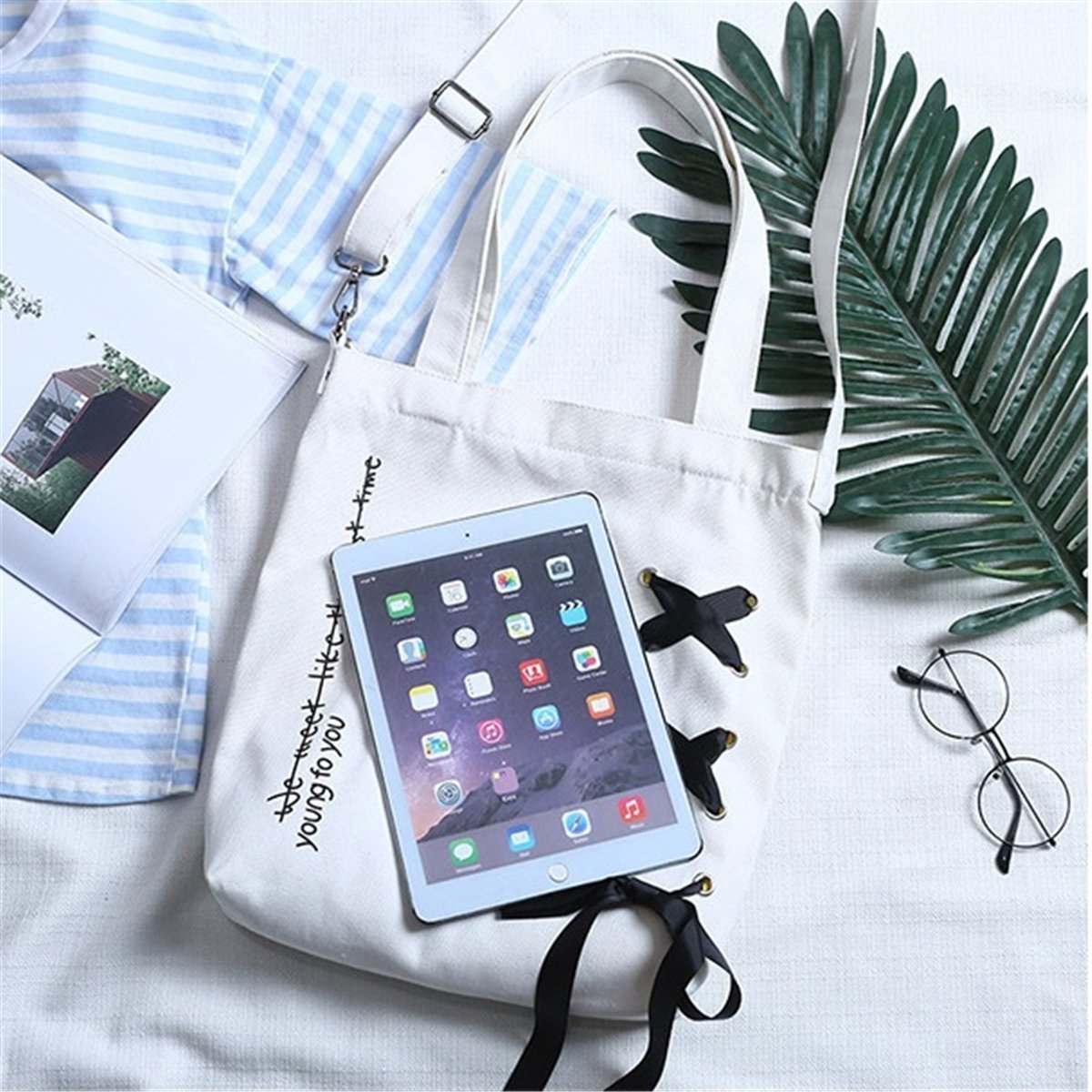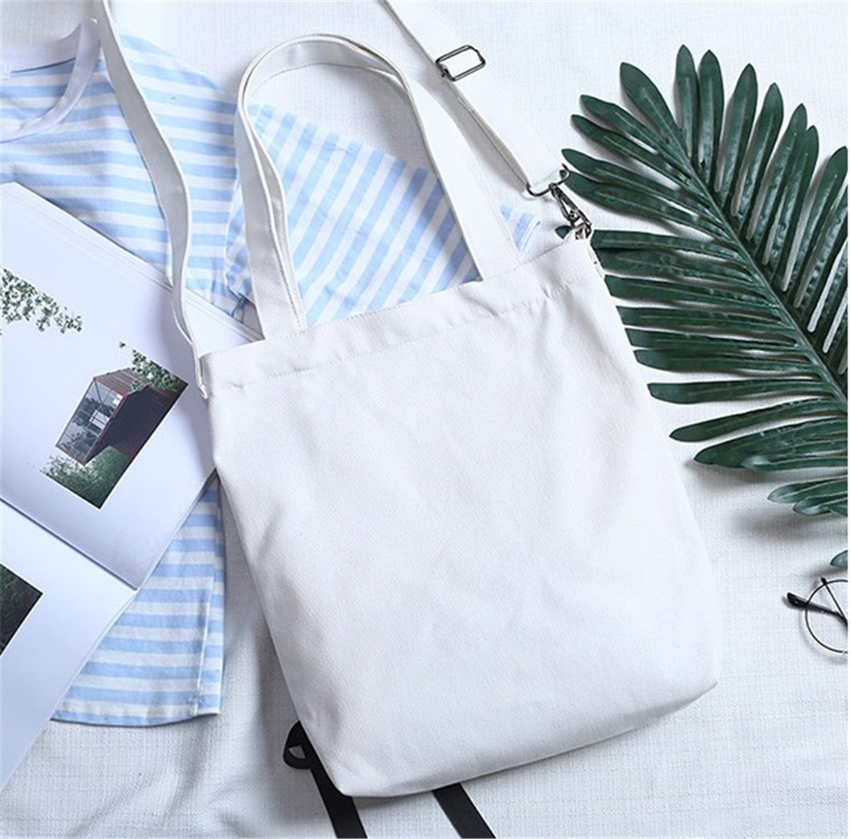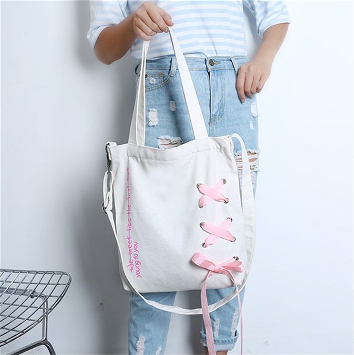 Canvas Tote Bag 2 WAY - KQueenStar Women's Canvas Shoulder Handbag Bag with Alphabet Ribbon A4