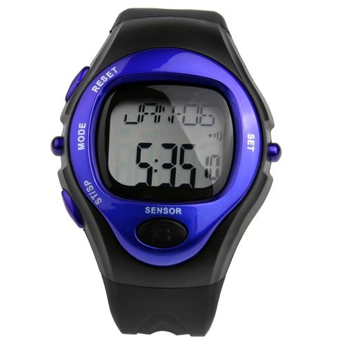 -. Feature : Brand new and high quality / Calculate your heart rate and calories burned while exercising / PU watch strap / ABS watch case / Color: blue