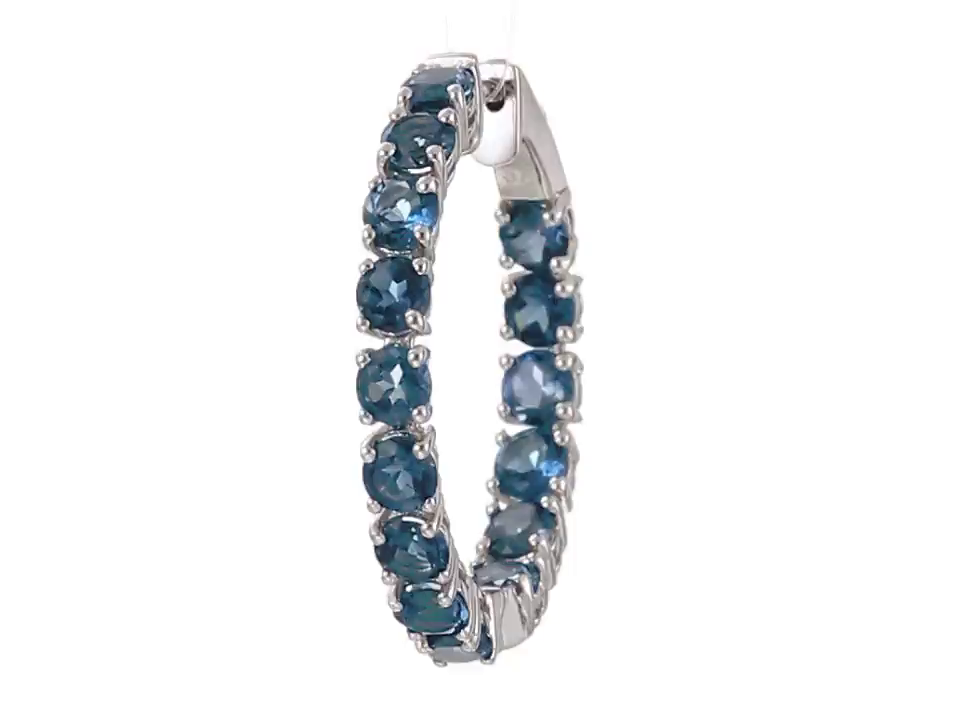 30 natural 4mm 8.5 round cttw London Blue Topaz gemstones hoop earrings is a beautiful piece of craftsmanship.