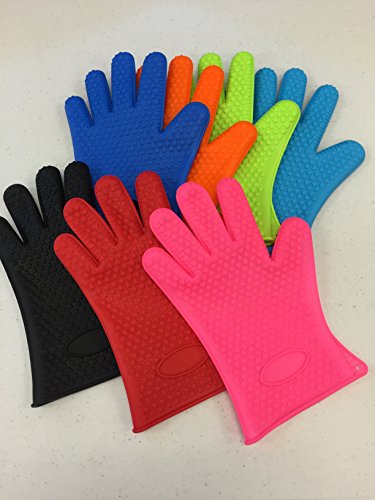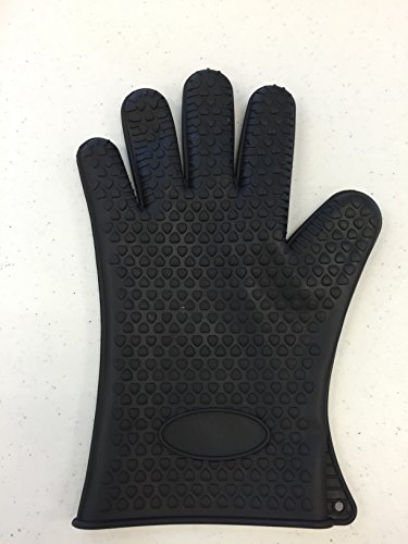 Heat Resistant Silicon Oven Mitts - BBQ Gloves - Dishwasher Safe - Set of 2 Gloves (Black)