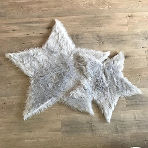 Machine Washable Faux Sheepskin Light Grey Star Rug 2' x 2' - Soft and silky - Perfect for baby's room, nursery, playroom - Fake fur area rug (Star Small Light...