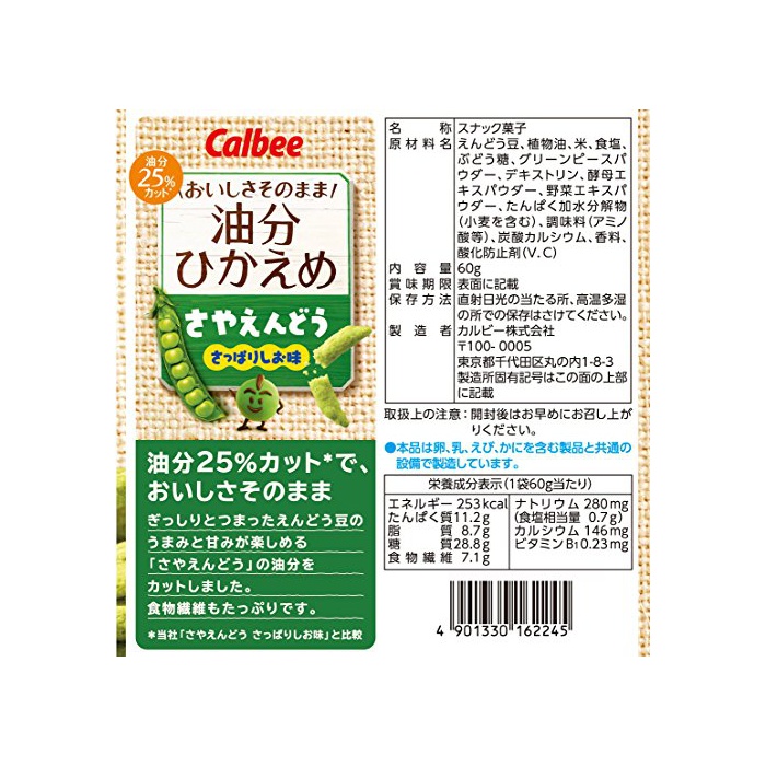 원재료:엔 어떻게(아무리) 콩,식물성 기름,미,식염,포도당,그린 피스 파우더,덱스트린,효모 엑기스 파우더,야채 엑기스 파우더,담백 가수분해물(밀을 포함한다)고, 조미료(아미노산등)고, 탄산 칼슘,향료,산화 방지제(V.C)