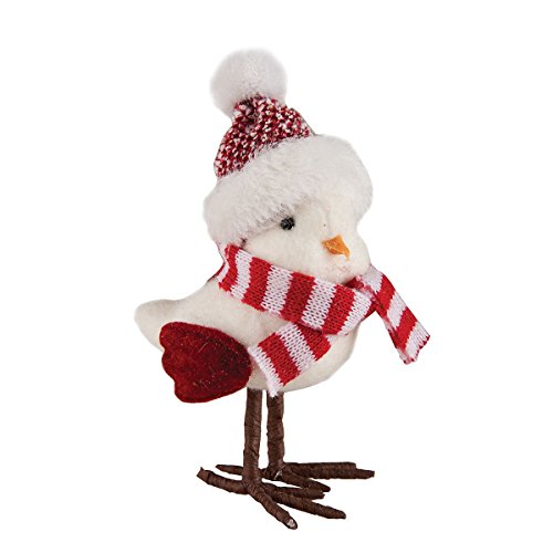 - Features a fuzzy white bird wearing a fuzzy winter hat & a candy cane stripe scarf