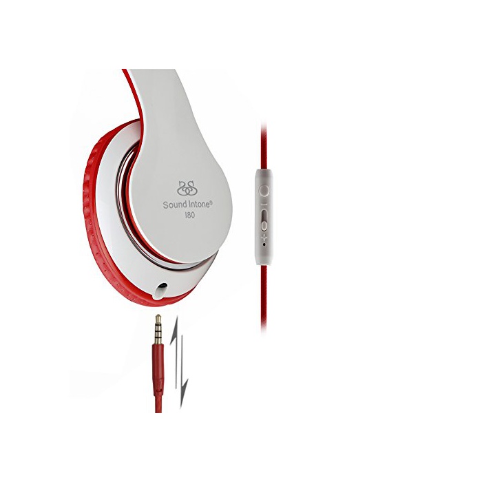 Sound Intone I80 헤드폰 볼륨 리모콘 콘트롤 마이크 부착 화이트 레드