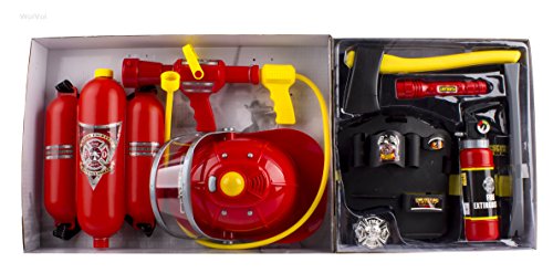 -. Title : WolVol All-In-1 (Realistic Lights and Sounds, Water Spray) Bundle Fire Play Set Toy for Kids, Fire Hat, Backpack Water Gun Blaster, Flashlight, Fire Extinguisher, Dress Up and Badge, Fire Tools, Gears