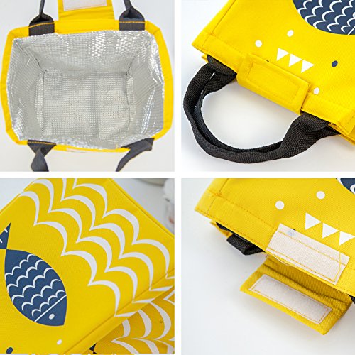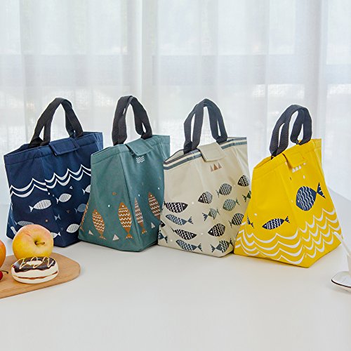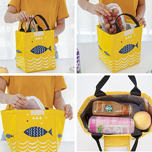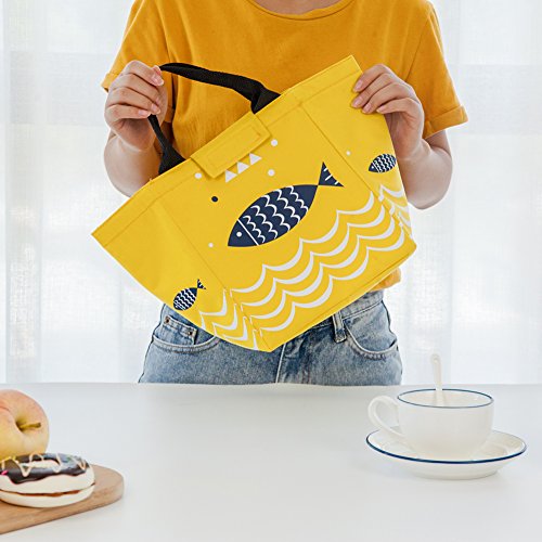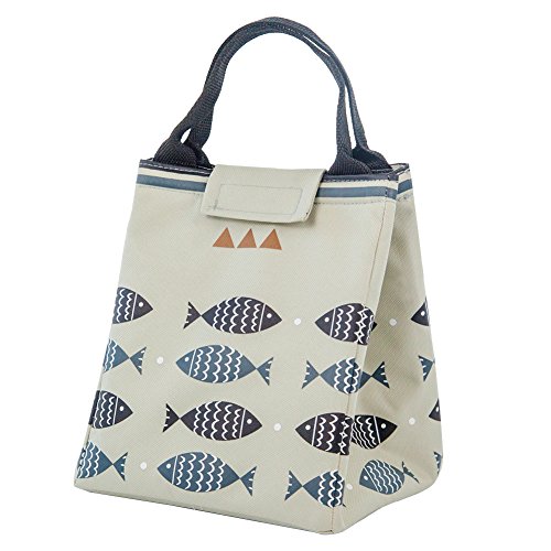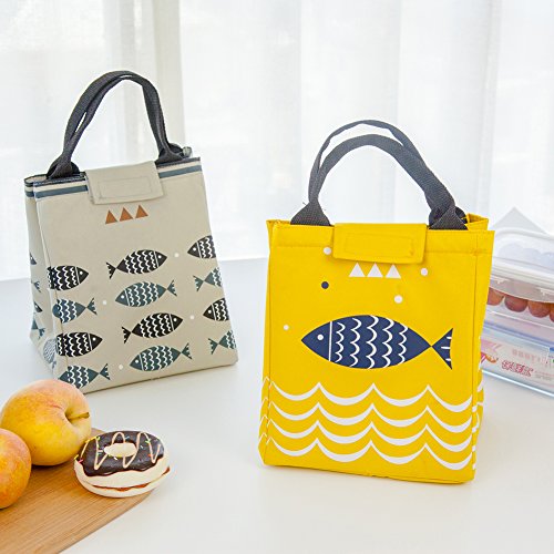 Reusable Lunch Bag, Moosoo Fish Priting Handy Portable Insulated Lunch Tote Lunch Bag Cute Print Outdoor Picnic Bag for Women Childre Kids Teens Girls (Grey-Fish)