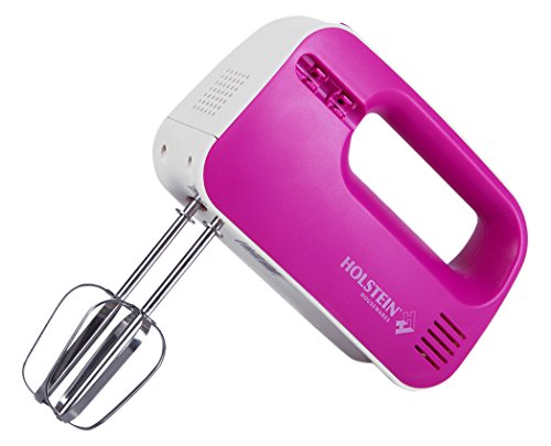 Versatile and easy to operate, use the Holstein Housewares 3 Speed Hand Mixer with cakes, biscuits, frosting, quick breads, mashed potatoes, pastries, and other recipes. Choose from three speed settings to tackle a variety of mixing and whisking tasks. Hassle-free prep with clip-on detachable beater holders. Conveniently compact, store anywhere in the kitchen to save counter and storage space. With 150 watts of power, quickly mix batters right in the bowl. Available in magenta or teal, compliment any personality and decor.Feature