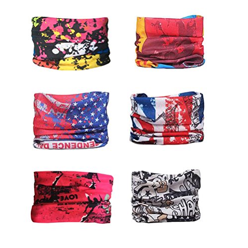 A VALUE HEADWEAR - 1+1>18+? The answer is YES! A Versatility Headwear equals a Fashion Headband, a Hairwrap, a Neck Gaiter, a Bandanna, a Bandanna Cap, a Pirate Cap, an Alice Band, a Balaclava, a Foulard, a Scarf, a Neckerchief and more. More importantly than all of that is you just need to place an order to get 6-pack of versatility headwear rather than 1-pack of it! There are also 12 different styles are available.