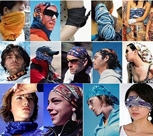 AN ALMOST OMNIPOTENT HEADWEAR - This is a kind of amazing versatility headwear which can be used as Fashion Headband, Hairwrap, Neck Gaiter, Bandanna, Bandanna Cap, Pirate Cap, Alice Band, Balaclava, Foulard, Scarf, Neckerchief, Sahariane, Blind Chicken, Mask, Veil, Eyeshade, Face Mask, Wristband, Armband, Tube, etc. You can customize it in more than 18 different ways! Depends on your originality, we deeply believe that the headbands can be used in more ways in your hands!