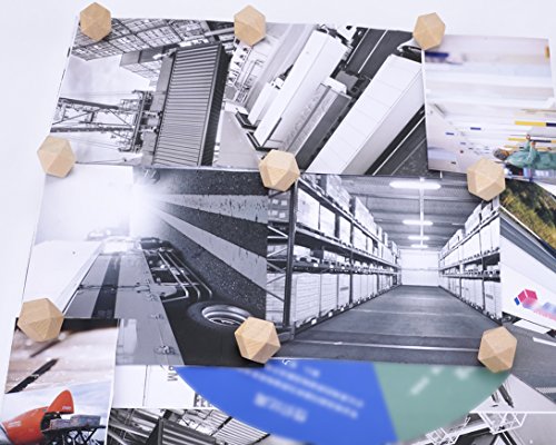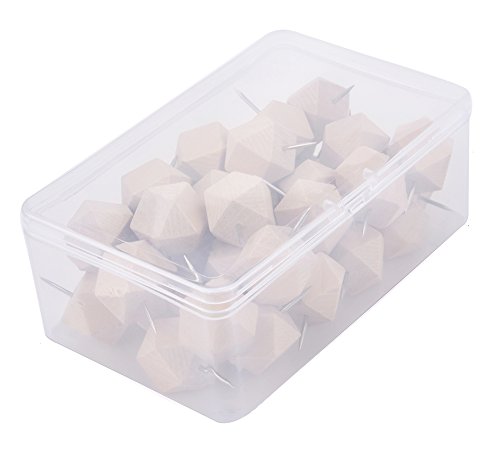 Wood Push Pins, JoyFamily Geometric Decorative Thumb Tacks with Box for Cork Board, Map, Photos and Calendar, Natural Color (35 PCS)