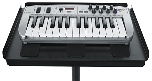 Studio : Gator Cases Publisher : Gator Cases Binding : Electronics Product Description Gator Frameworks GFW-UTL-MEDIATRAY2 provides a heavy-duty platform for laptops, projectors, production samplers, drum pad controllers, small to medium keyboard controllers and more. The rock solid 1 3/8” steel tubing, tripod design anchors into place, sustaining up to 45lbs of equipment. Quickly construct the perfect setup for a workstation or visual display by adjusting the tilt and angle of the 1.5mm steel tray and fine-tuning the height anywhere from 36” to 48”. the reversible tray features a raised edge on one side for securely placing items that do not need to be mounted. The reverse side of the tray allows you to attach a monitor by using the included hardware and VESA 100x100 mounting pattern bracket. To prevent sliding and shifting of devices when using the tray adhesive EVA rubber pads are included for you to attach where needed. The built-in safety pin and removable, red rings on the rubber grip feet keep the stand locked into position and reduce the Risk of tripping or knocking over the stand in dark or low-lit rooms. When not in use, the stand’s compact, collapsible design quickly folds, taking up minimal storage space. The Frameworks GFW-UTL-MEDIATRAY2 is truly an all-purpose solution for setting up any media workstation or display. 0