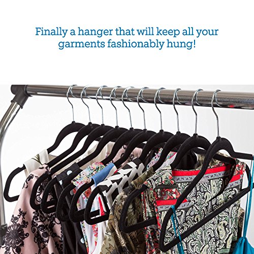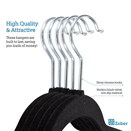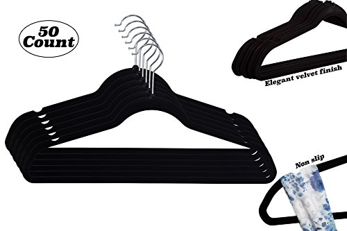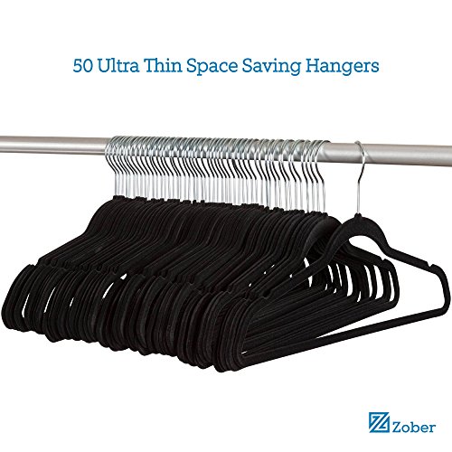 -. Binding : Kitchen -. Brand : ZOBER -. Color : Black -. EAN : 0711717439150 -. Feature : INCREDIBLE VALUE - Upgrade and de-clutter your closet with 50 attractive black velvet non slip hangers featuring shiny chrome hooks and notched shoulders that will make hanging clothes a simple pleasure! Made of high quality materials, these hangers are built to last; saving you loads of money! / NON SLIP GRIP THAT WON'T QUIT - The soft texture of the hanger grips delicate items such as camisoles and tanks with ease, while its sturdy, yet lightweight construction can withstand a maximum weight of 6.5 pounds; hanging heavy outerwear like a charm! These black velvet hangers are ready to use; no annoying water "dipping" process is necessary! / MAXIMIZE CLOSET SPACE- We all could use a little more clothes storage. Whether you're moving to a college dorm room or just have a tiny closet; the slim profile of these Ultra Thin Space-Saving Hangers can free up to 50 percent more space on your garment rack. / PLUS-SIZE FRIENDLY! - At last, a coat hanger that keeps full-figured tops and outerwear securely in place! The velvet material clings on to clothing preventing slipping. Rest-assured that your garments will stay fashionably hung on the clothes rack and not dressing up your floor! / CONVENIENT DESIGN - The shoulder line is contoured to help preserve clothes shape and features precisely-cut notches for keeping straps in place. No more hanger marks on fine knits or damaging shoulder bulges on your lucky tshirt! The pant hangers feature a horizontal bar that is covered in luxurious velvet that both grips and prevents creases. -. IsAutographed : 0 -. Label : ZOBER -. Manufacturer : ZOBER -. ProductGroup : Home -. ProductTypeName : HOME -. Publisher : ZOBER -. Studio : ZOBER -. Title : Premium Quality Space Saving Velvet Hangers with Chrome Hooks by Zober - Non Slip Suit Hangers in Black - 50 pack... -. UPC : 711717439150