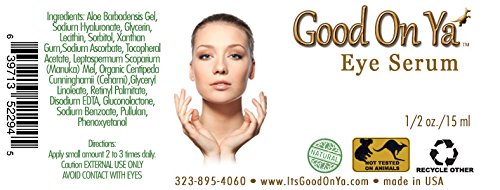 -. Binding : Misc. -. Brand : GoodOnYa -. Feature : OUR NANO WRINKLE SERUM IS UNLIKE ANY OTHER SERUM! Concentrated nutrients dive down 7 layers stimulating your own natural collagen and elastin while feeding your cells the vital vitamins, minerals and other nutrients they need. No gimmicks, just results! / MANUKA HONEY WAS FEATURED ON THE DR OZ SHOW! We also use moisture magnets which pull moisture molecules out of the air, trap them in your cells and envelop the cell. That gives not only instant results, but long term benefits of moisturized skin cells! / BEST ANTI AGE SKIN CARE PRODUCTS! Organic and natural ingredients. We have all the vitamins, minerals, trace minerals and amino acids your cells need to heal. Great for dry patches, eyes, dark circles, fine lines, smile lines and replaces your night cream! / GoodOnYa INTENSE VITAMIN C NANO EYE SERUM Formula is good for the repair of smile lines, dark circles, crows feet, age spots and reduces pores. / You won't believe the amazing results in less than 3 minutes; but wait the full 3 months and be even more amazed! Stimulate collagen & elastin and repair smile lines, dark circles, fine lines. -. Label : GoodOnYa -. Manufacturer : GoodOnYa -. ProductGroup : Beauty -. ProductTypeName : BEAUTY -. Publisher : GoodOnYa -. Studio : GoodOnYa -. Title : Antioxidant Serum, Anti Aging Face Serum, Instant Visible Results by GoodOnYa. Nano Aloe Vera, Vitamins A, C & E and Manuka Honey. Natural and Organic