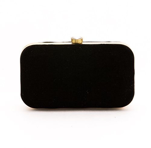 A velvety clutch brings a bright spot to your day with beaded and a floral embroidered design. A black velvet background adds eye-catching elegance to this clutch furnished with a drop-in-snake-chain strap.