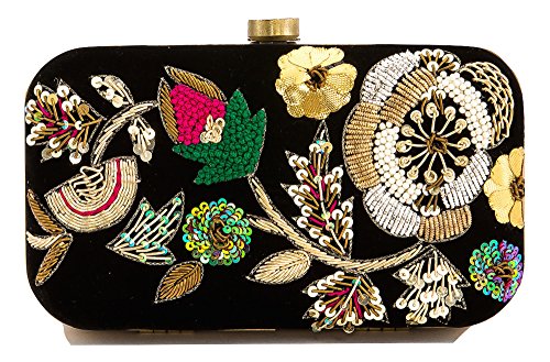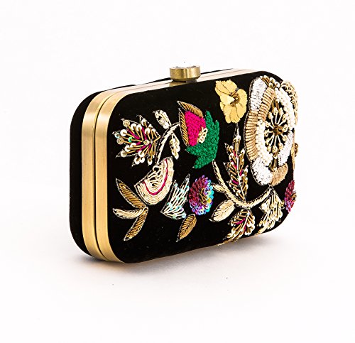 Floral Embroidered Black Velvet Clutch with Bead Work